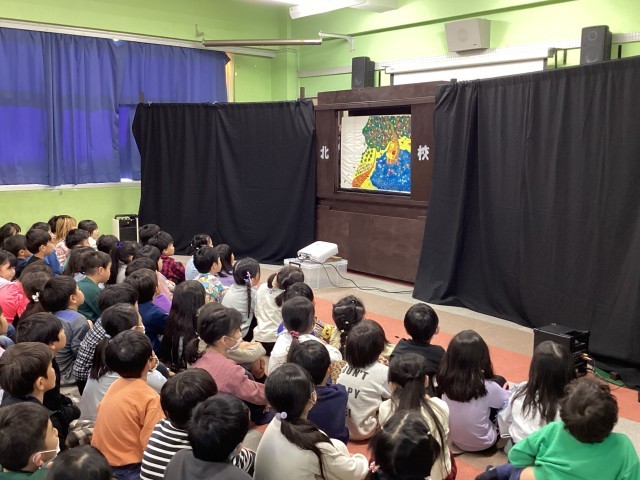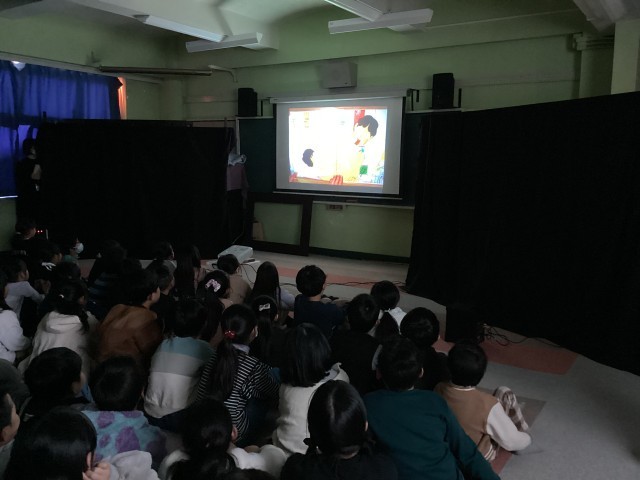 11月26日(水)ふれあいホールで、1から3年生は人権紙芝居をみました。