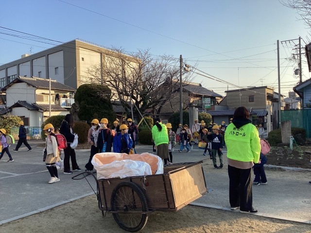 登校後、集合場所、通学路に落ちていたゴミを分別してくれたみなさん、ありがとうございました。