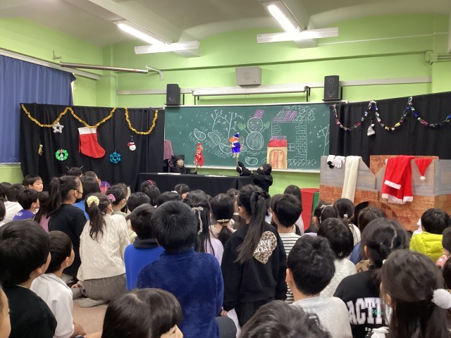 11月26日(水)ふれあいホールで、1から3年生は人権紙芝居をみました。