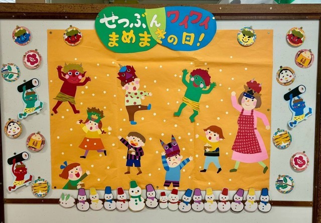 【図書ボラ】図書館掲示★節分・冬バージョン