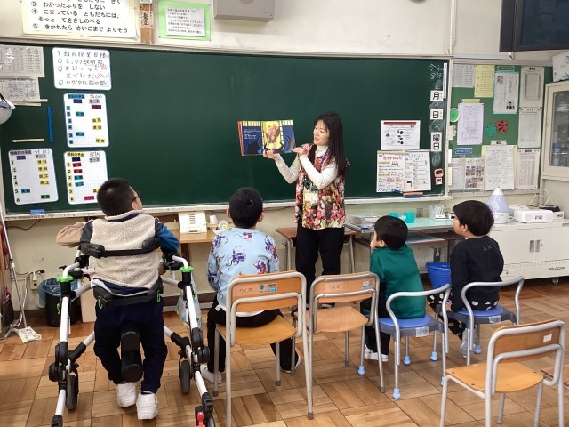 みんなが揃うのを待って、始まりました。絵本を見ながら真剣に聞いていました。