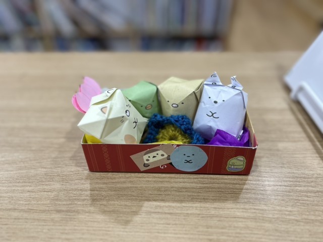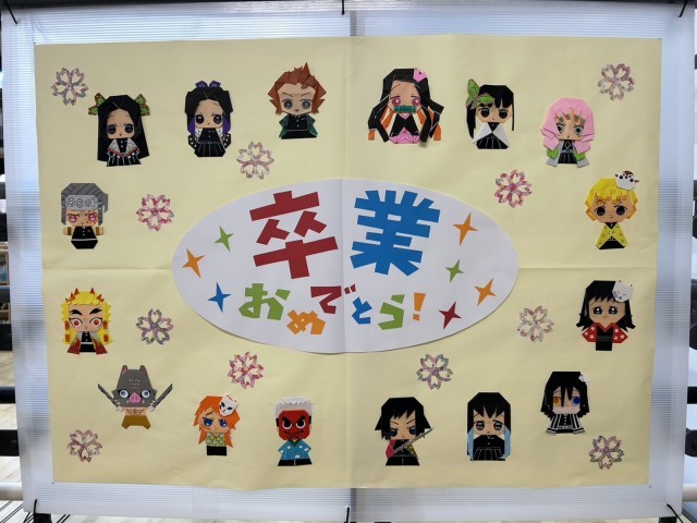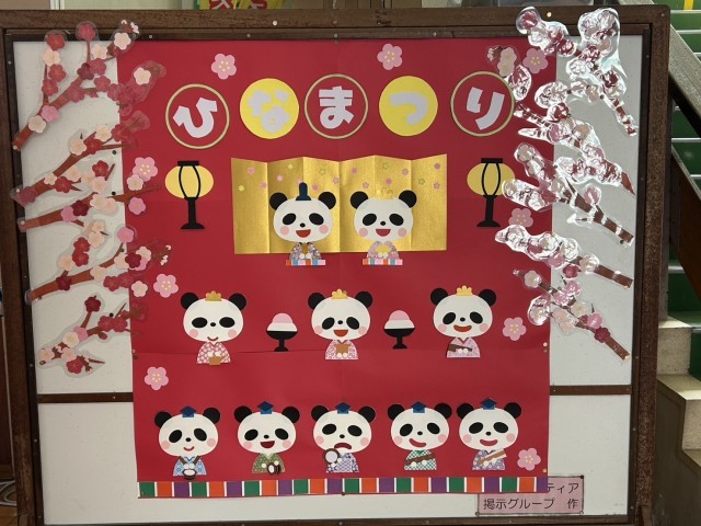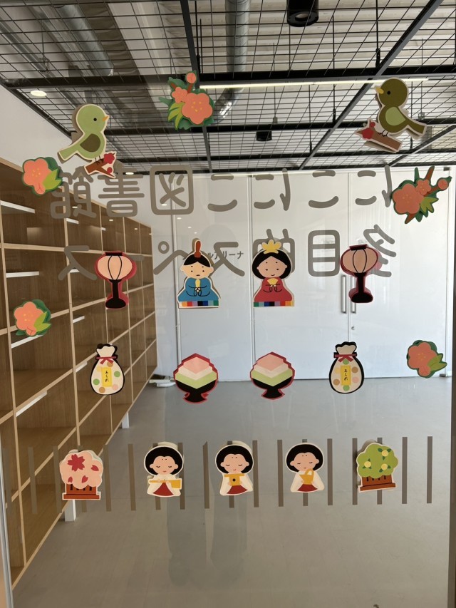 玄関と図書館の掲示が、節分が終わったので変わりました。春が近付いてきたな〜と感じます。今回も素敵な掲示をありがとうございました。