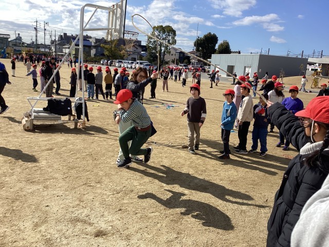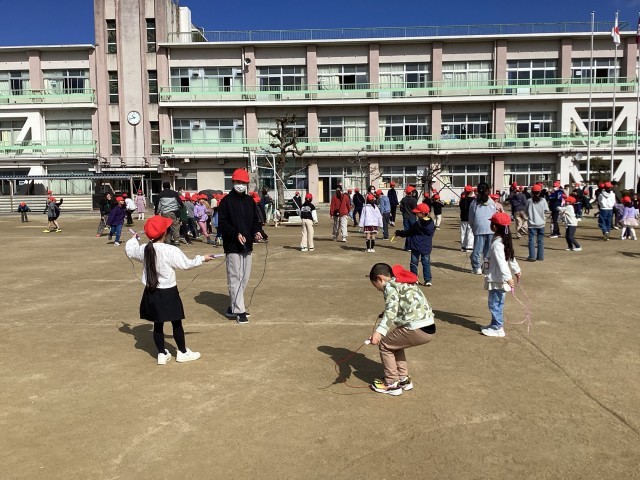 今日の長放課の様子です。暖かく運動しやすい日でした。ベア学級で大縄跳びをしている様子があちらこちらで見られました。なわとびdayは明日も行われます。