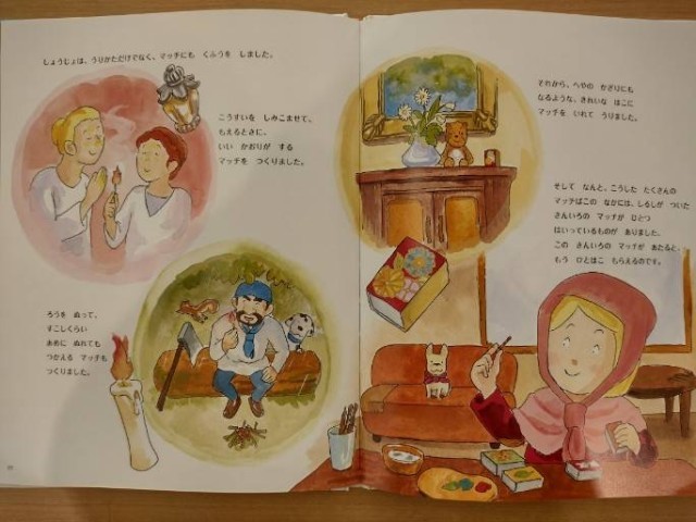 アンデルセンの「マッチ売りの少女」をモチーフに、少女が自力でマッチを売る方法を学び成功するお話です。