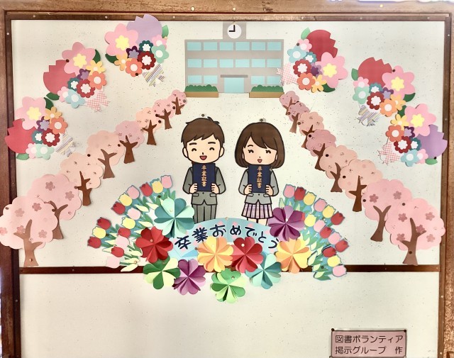 【図書ボラ】図書館掲示★卒業へ