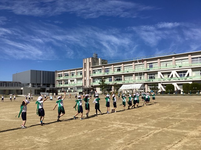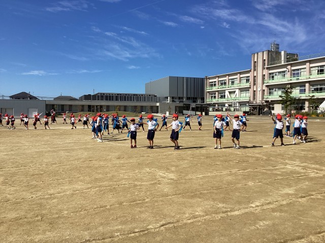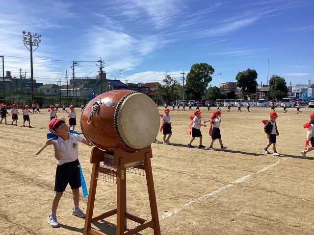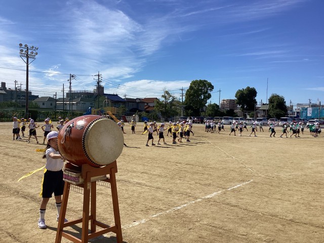 初めての運動場練習でしたが、音楽と太鼓に合わせて、元気いっぱい練習できました!