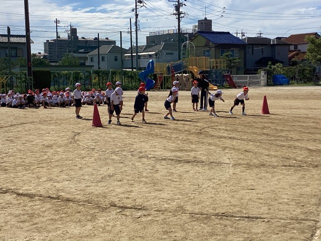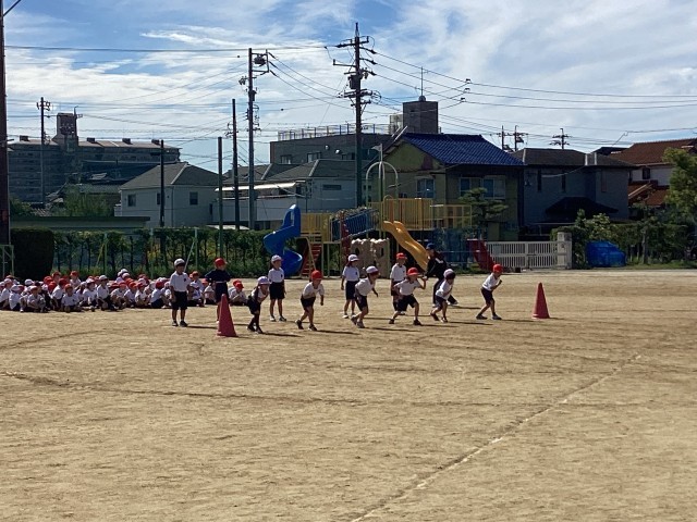 絶好の水遊び日和の中、的当てや水を掛けあったりして、どの子も楽しそうに水とふれあうことができました。
