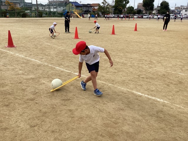 今日は1年生が、特別非常勤講師の福井先生による体育の授業です。ボールを使った運動を楽しく学びました。