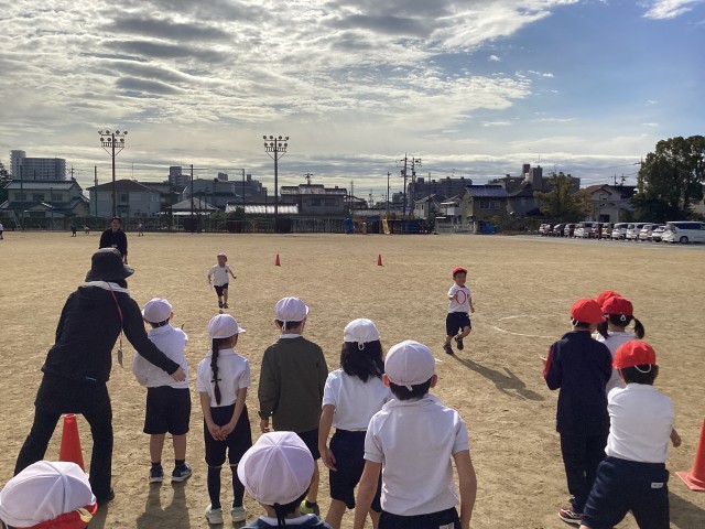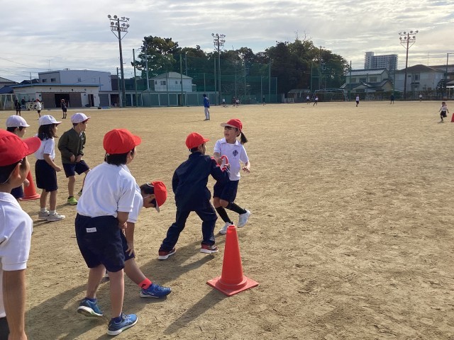 今日は1年生が、特別非常勤講師の福井先生による体育の授業です。ボールを使った運動を楽しく学びました。