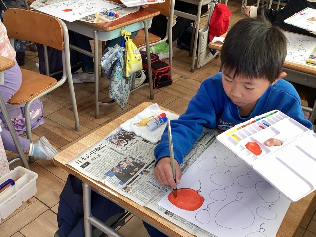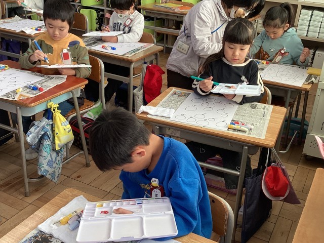 絵から想像して作ったお話をみんなで読み合い、感想を伝え合いました。みんなしっかりお話を作れていて、1年生の成長が感じられた場面でした。