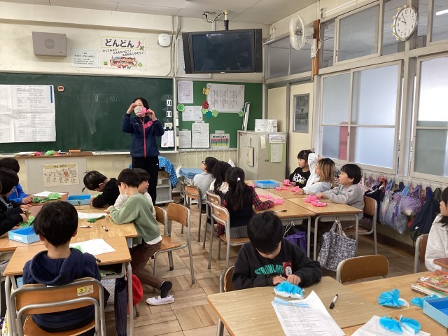 絵から想像して作ったお話をみんなで読み合い、感想を伝え合いました。みんなしっかりお話を作れていて、1年生の成長が感じられた場面でした。
