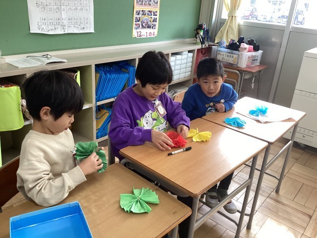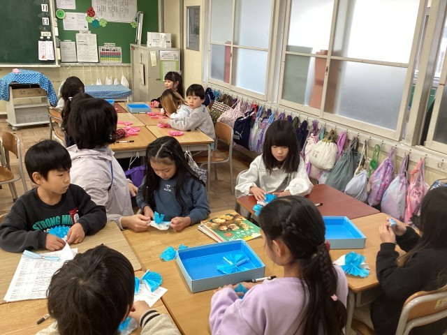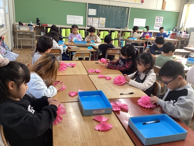 北っ子文化祭で使うお花を準備していました。破らないように1枚ずつそ〜っと花びらを立てていました。