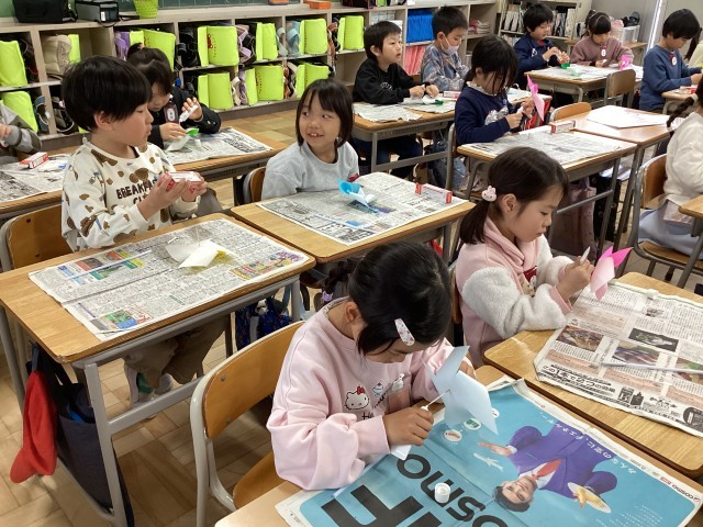 北っ子文化祭で使うお花を準備していました。破らないように1枚ずつそ〜っと花びらを立てていました。