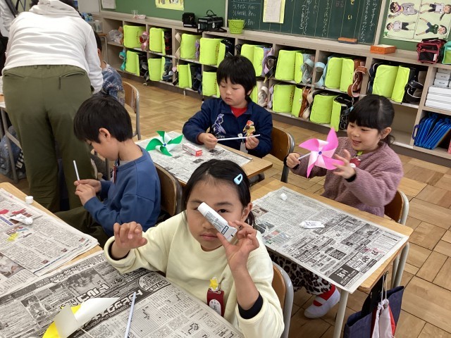 1時間目に行った、たこあげ・かざ車・かぜあつめの振り返りをしました。