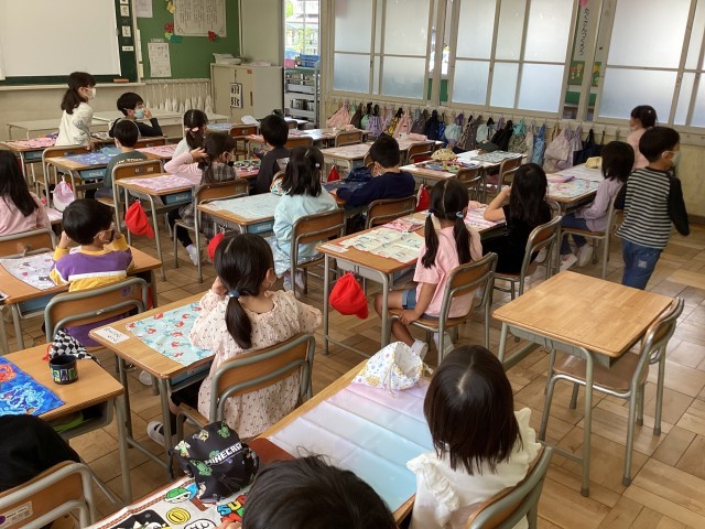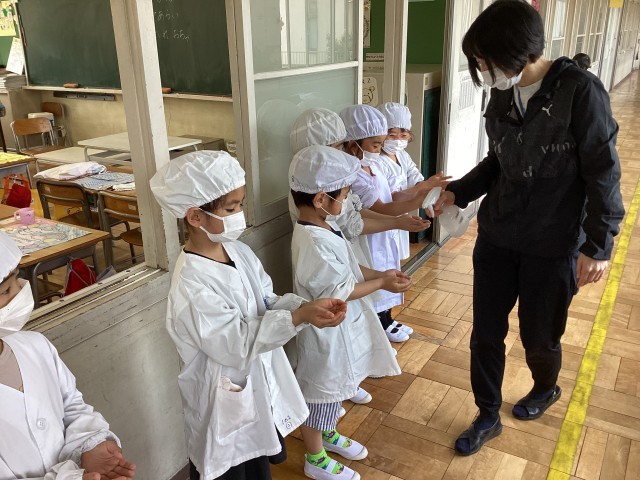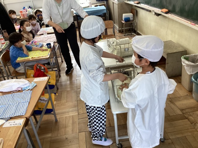一年生は、小学校初めての給食、準備からドキドキ💓です