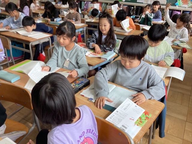 2年生 1年生を招待して、10月に行うおもちゃまつりの招待状を書きました。
