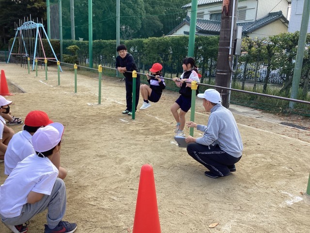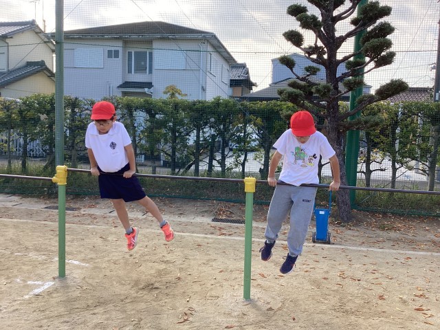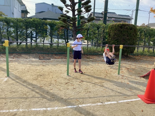 今日は3年生が、特別非常勤講師の福井先生と鉄棒を学習しました。