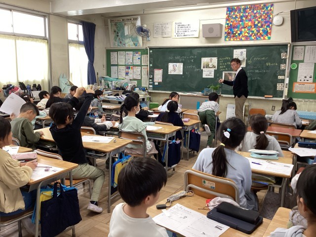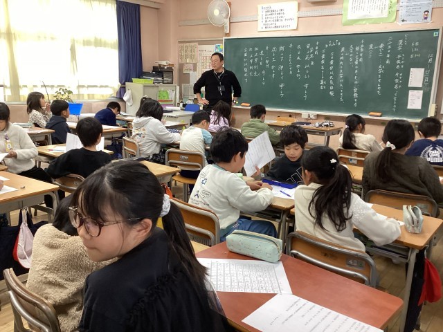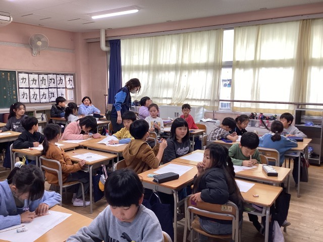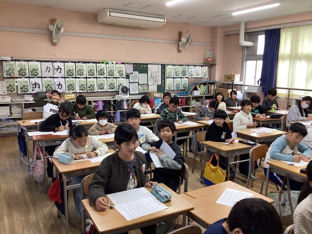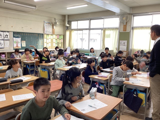 12月1日(月)の6時間目は、トライ授業(他の学級の先生による授業)でした。それぞれの学級で、担任の先生とは違う先生から、お米について、将来について、ひらがな・漢字・カタカナに関すること、岩倉市の農業(グリーンアカデミー)についての授業を行いました。