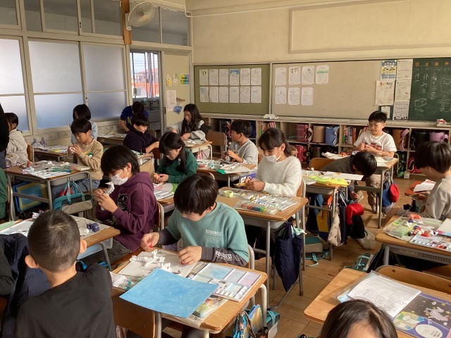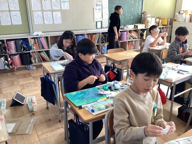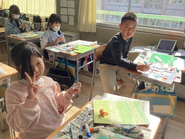 国語で今までに学習した物語から想像を膨らませた一場面を作っています。