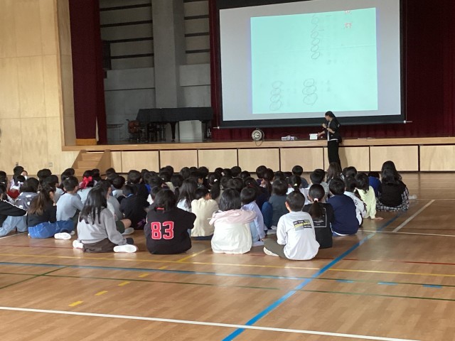 4年生がスタートして最初の学年集会をしました。学年のきまりを確認したり、校外学習で行く「五条川左岸浄化センター」について話を聞いたりしました。その後、ゲームをして遊びました。ルールを守って、みんなで楽しく1年を過ごしたいですね。