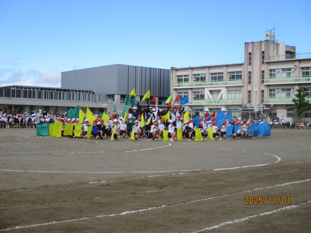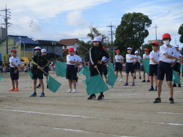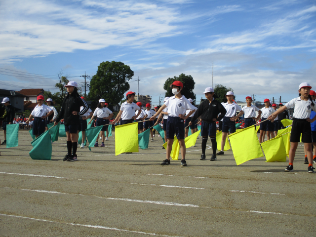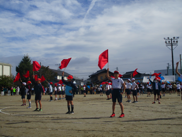 秋空の下、旗を綺麗になびかせました。トップバッターとして見事な演技を披露することができました。