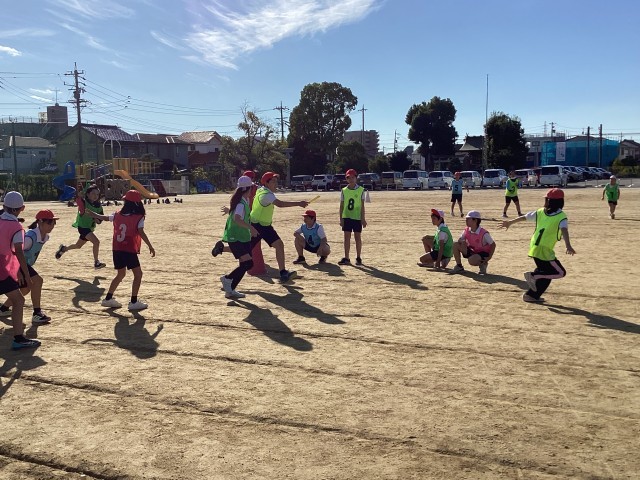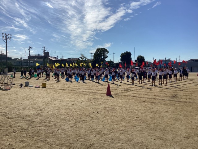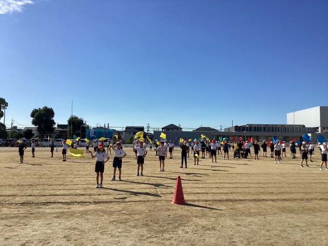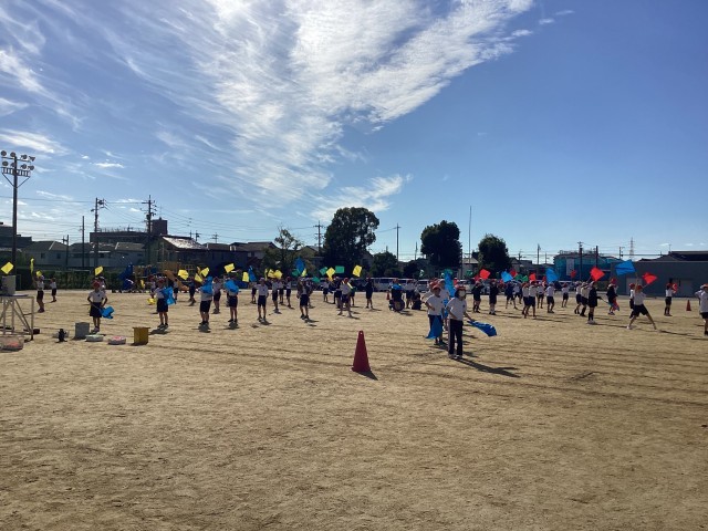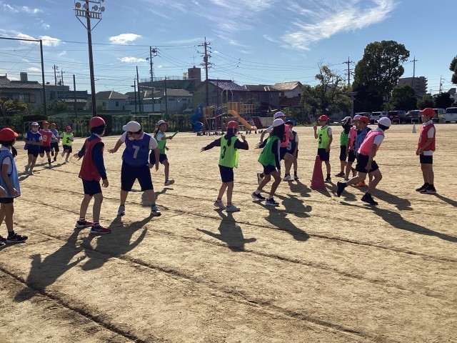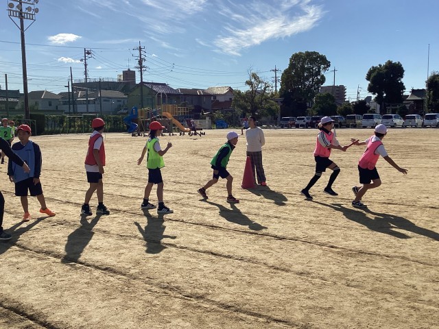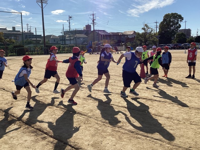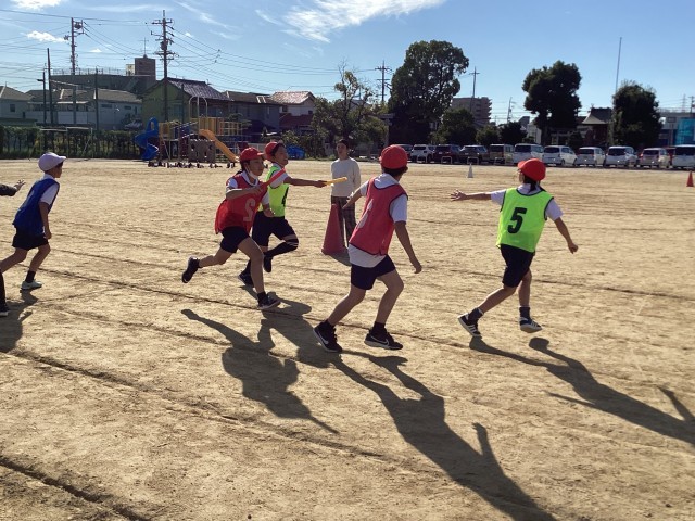 1時間目、6年3組と合同でリレーの練習を行いました。