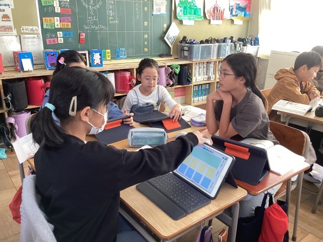英語で道案内をして、地図を完成させました。積極的に英語を使い、交流しました。