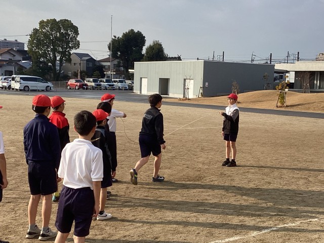 寒い中、縄跳びを頑張りました。いろいろな技にも挑戦しました。