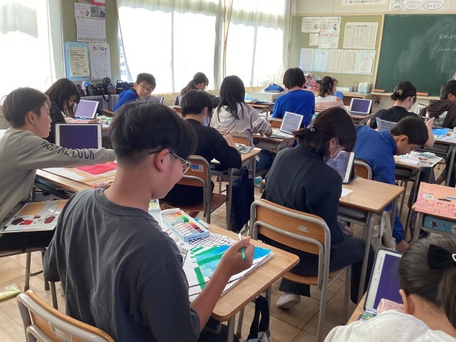 遠近法を用いて、思いが伝わるように表し方を構想して取り組んでいました。