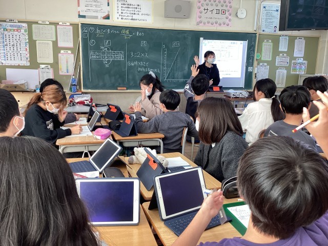 ともなって変わる2つの数量をみつけて、表・式・グラフに表しました。