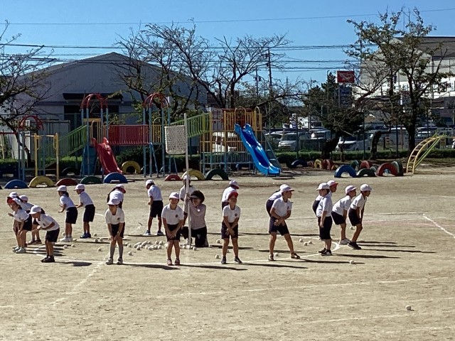 チェッコリ玉入れの練習をしました。楽しく踊って玉入れをして、競技を楽しんでいます。