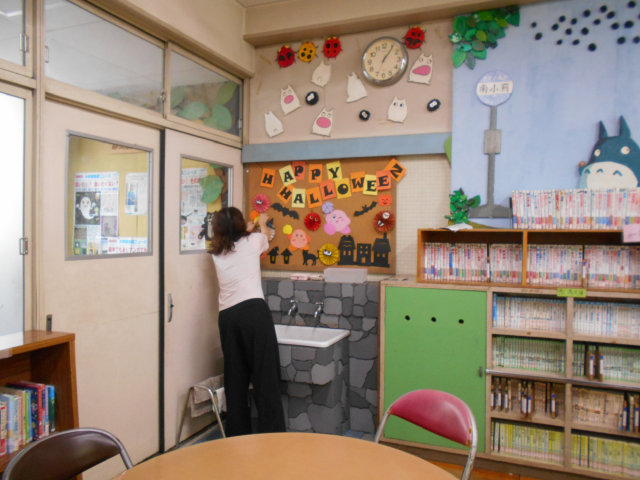 図書室は10月31日のハロウィンに向けて飾り付けをしました。