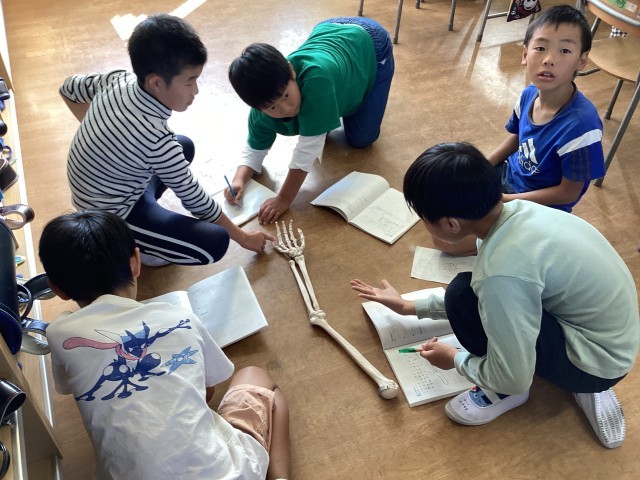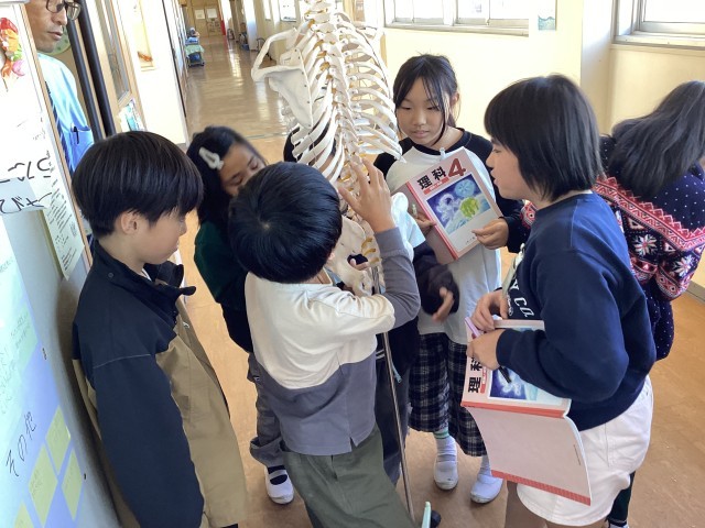 音楽では、もみじの歌詞について勉強しました。理科では、人体模型をみんなで調べました。