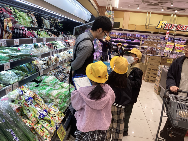 お店の中を見学したり、バックヤードを見せていただいたり、質問したりしてお客さんが買い物しやすい工夫を学びました。学んだことを学校でまとめていきます。