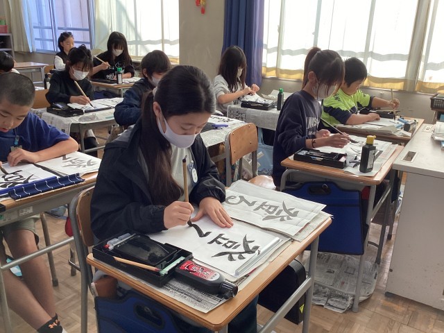 漢字とひらがなの大きさに気をつけながら「登る」の練習です。漢字を少し大きく書くのがポイントです。ひらがなの筆使いに苦戦していました。