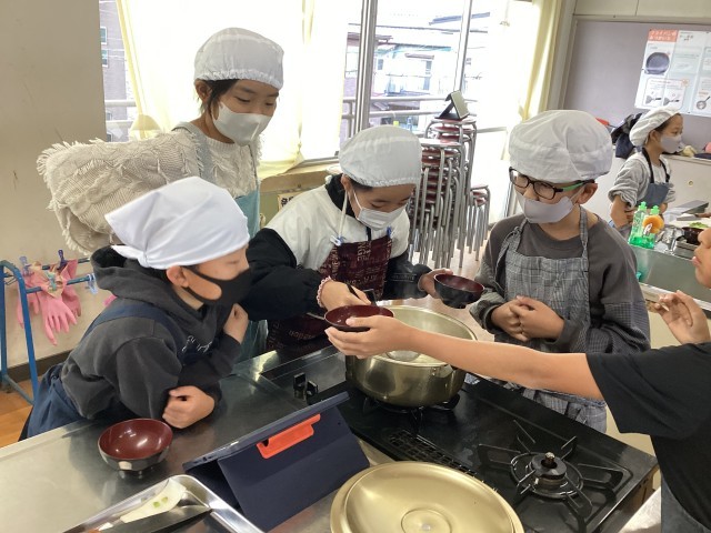 調理実習で、味噌汁作りにチャレンジです。