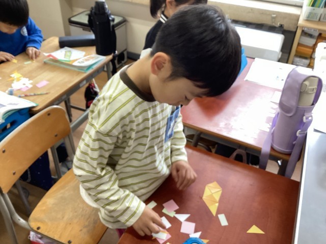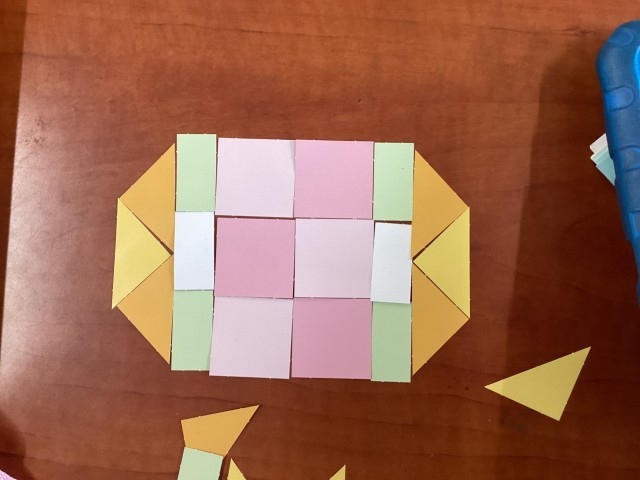 色紙を隙間なく敷き詰めて、模様づくりをしました。