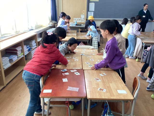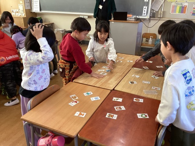 国際交流の授業がありました。クリスマスの様子を画像で見たり、お話を聞いた後、グループに分かれてカードゲームを楽しみました。