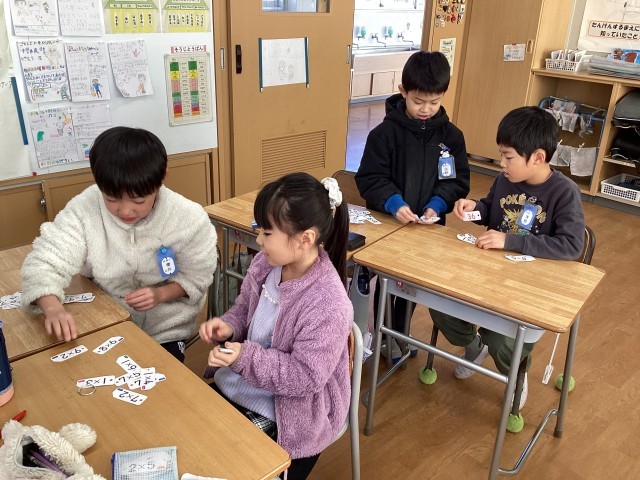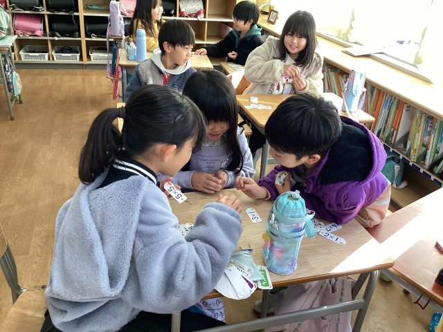 計算カードをつかって、九九ゲームをしました。たくさん練習して覚えた九九。冬休みも計算カードに挑戦して、3学期を安心してむかえられるようにしましょう。