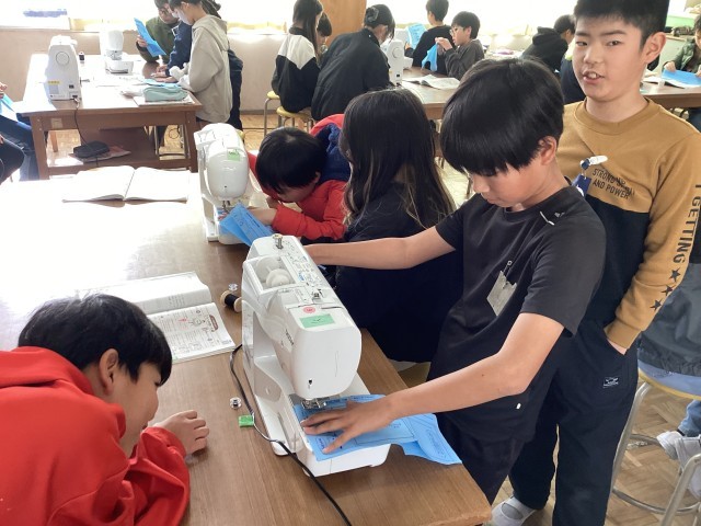 ミシンの学習が始まりました。空縫いで、真っ直ぐ縫う練習をしました。