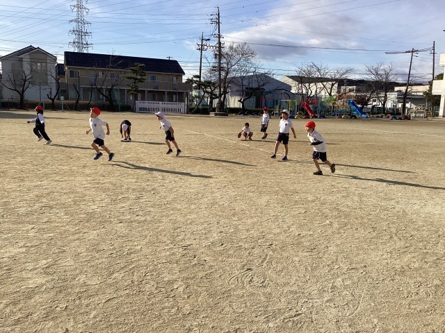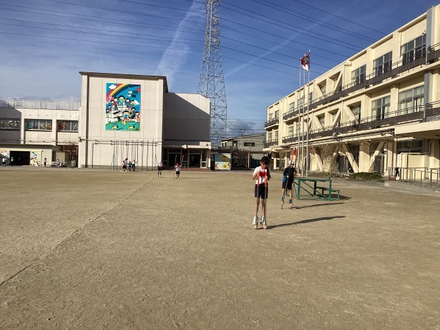 体育科の授業です。南っ子ギネスに向けて、練習をしています。風が強く、寒かったですが頑張りました。