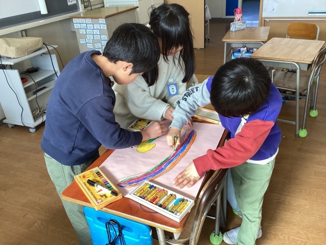 体育館での練習や、発表を盛り上げるための小道具作りに取り組んでいます。少しずつ気持ちが盛り上がってきました。