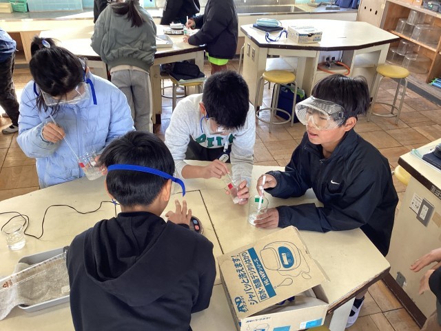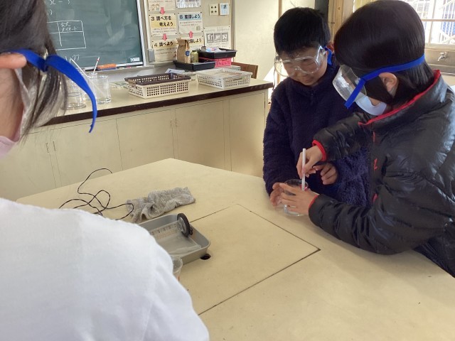 食塩とミョウバンを、水の温度を変えながら溶かしました。温度が変わると溶け方も変わるものがありました。