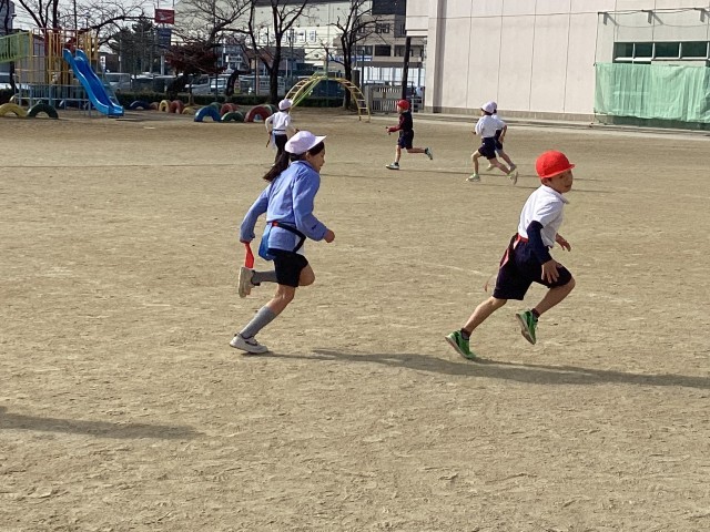 しっぽとりをしました。しっぽを取られないためにどうするとよいのか、しっぽを取るためにはどうするとよいのか、考えを出し合いました。