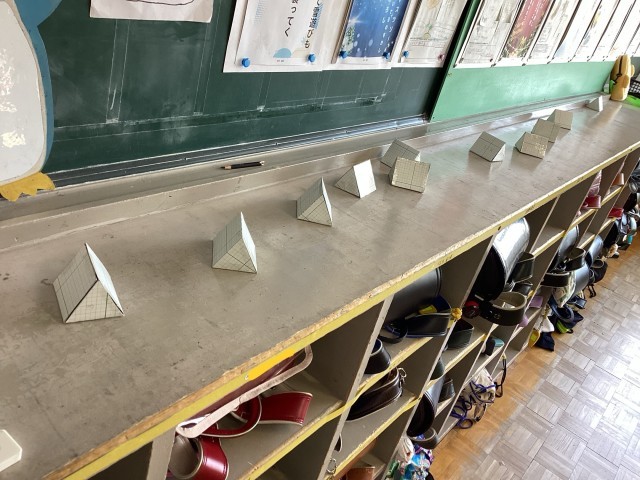 三角柱の展開図をかいて、実際に切って組み立ててみました。