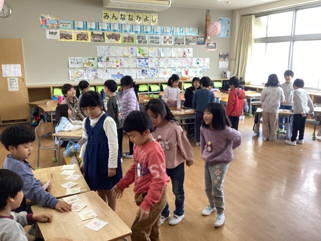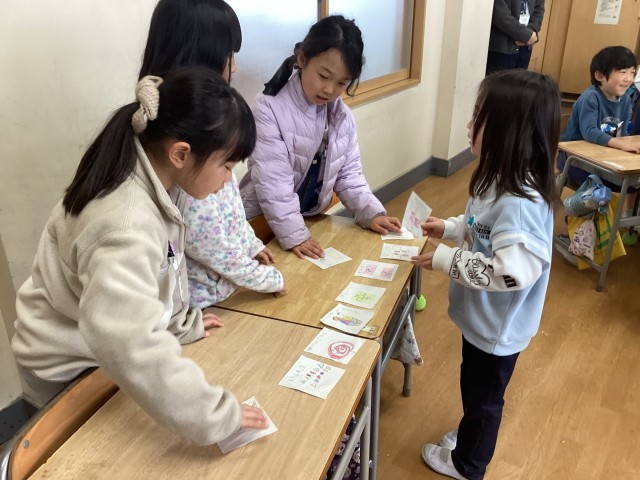 国語科「ものの名まえ」の学習のまとめで、お店屋さんをしました。グループで交代して、お客さんと店員さんを楽しみました。