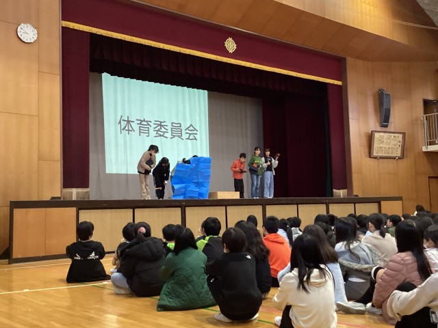 全校集会で、委員会のお仕事を紹介をしました。全校の前でも堂々と頑張る姿がありました。