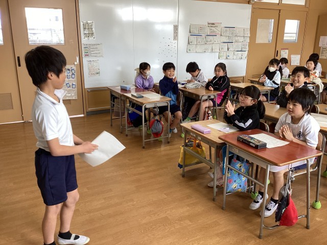 「楽しかったよ、2年生」で書いた作文を発表しました。友達との関わりや思い出のエピソードに、思わず笑みがこぼれていました。