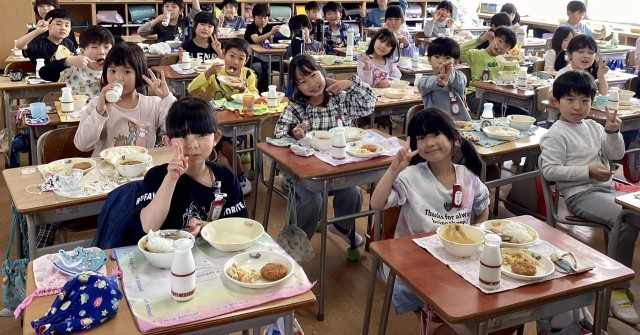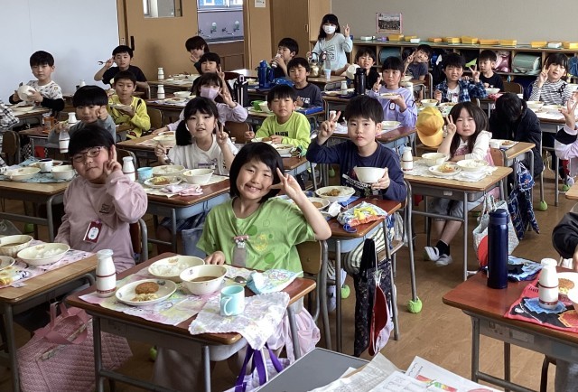 2年生初めての給食でした。当番や係が、上手に活動しました。