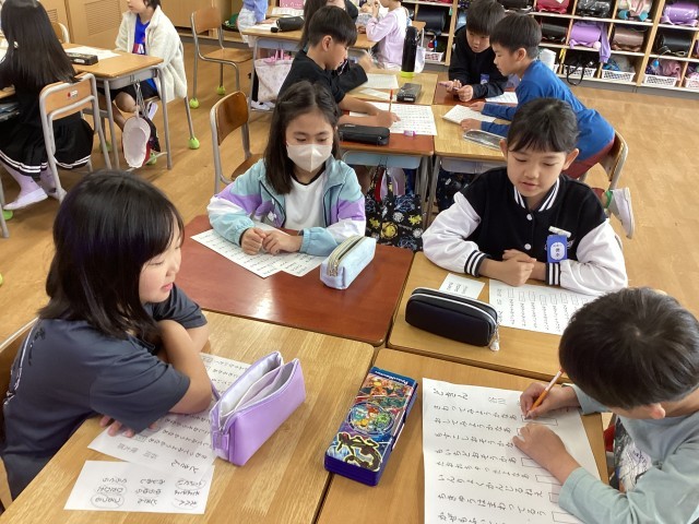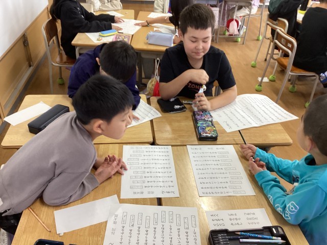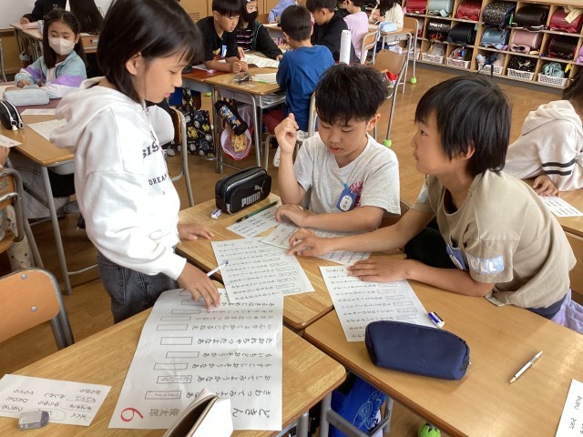 自分の意見を伝えたり、友達の意見を聞いたりしています.